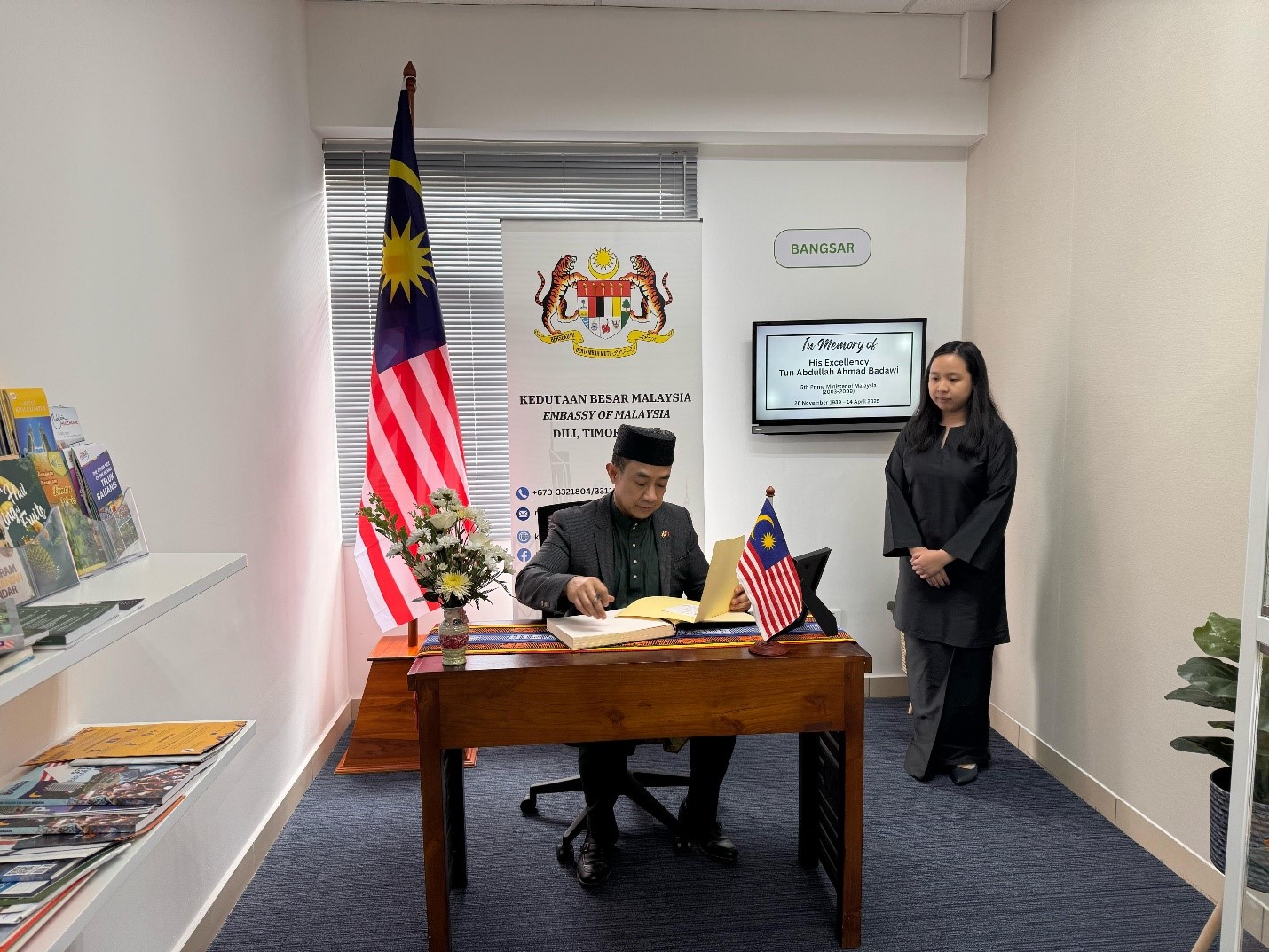 Buku Takziah bagi Allahyarham Tun Abdullah Ahmad Badawi telah ditandatangani oleh Duta Besar Istimewa dan Mutlak Negara Brunei Darussalam ke Republik Demokratik Timor-Leste pada 16 April 2025, bertempat di Kedutaan Besar Malaysia di Dili, Timor-Leste.